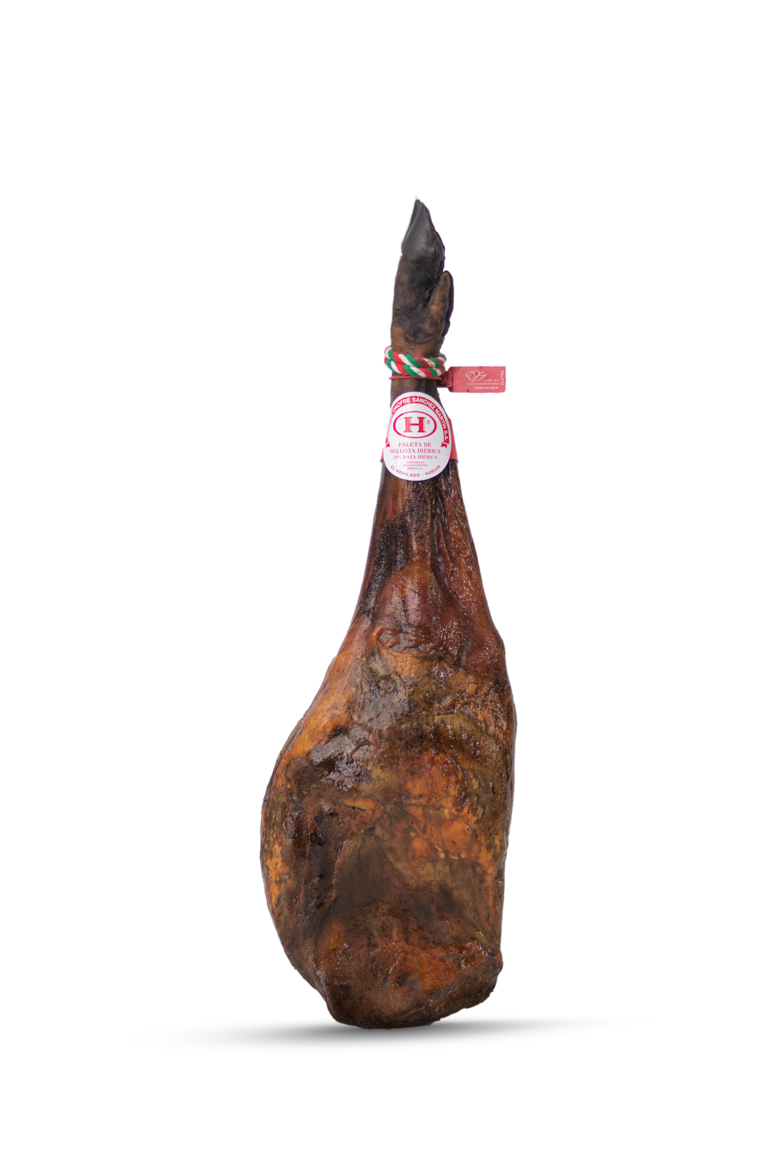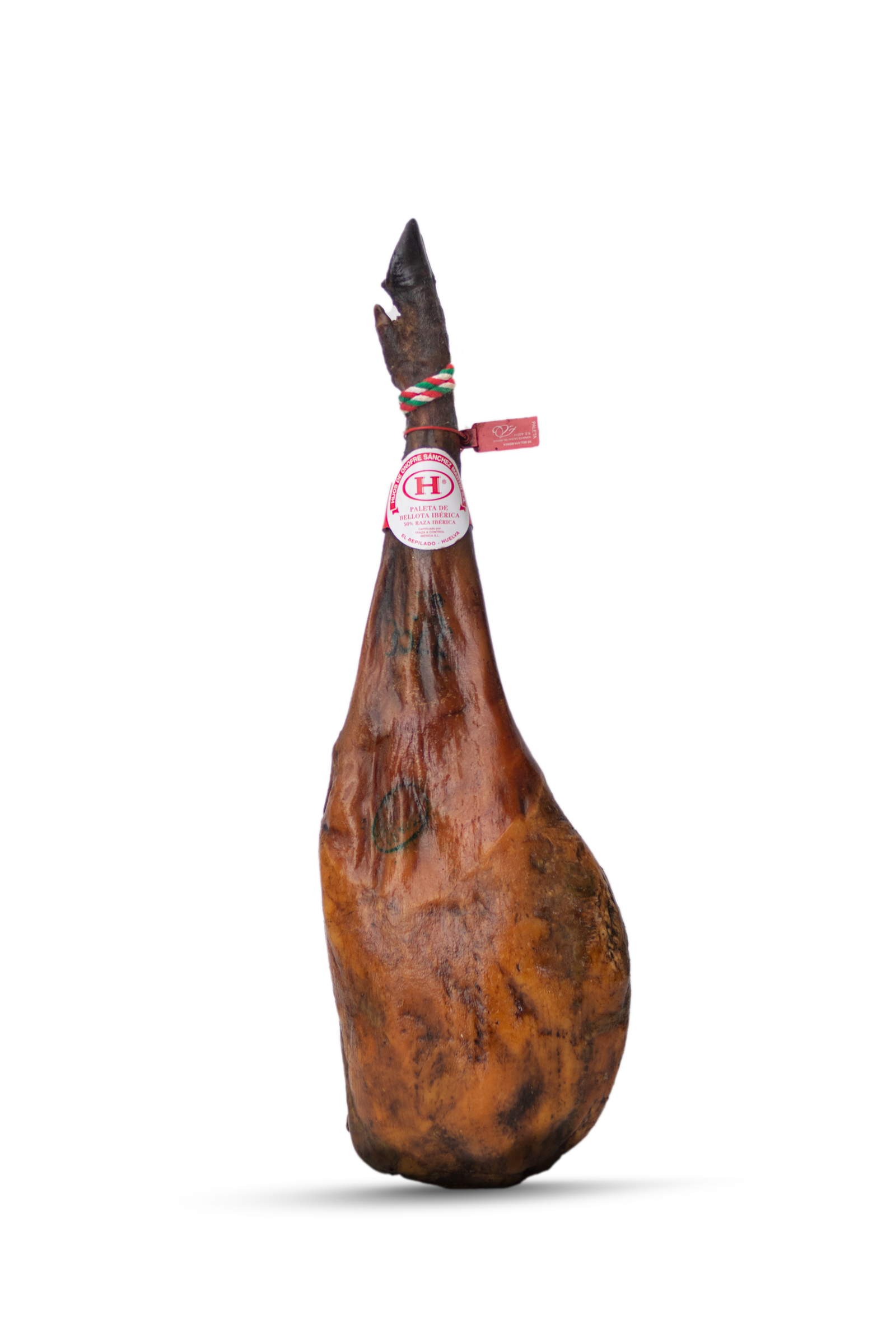 Pieza procedente de cerdos ibéricos, seleccionados y criados en nuestras dehesas en régimen de extensivo con una alimentación 100% natural y con bellotas en la época de montanera. La curación de este producto, en nuestros secaderos y bodegas naturales oscila entre 32 y 40 meses dependiendo del tamaño de cada pieza.